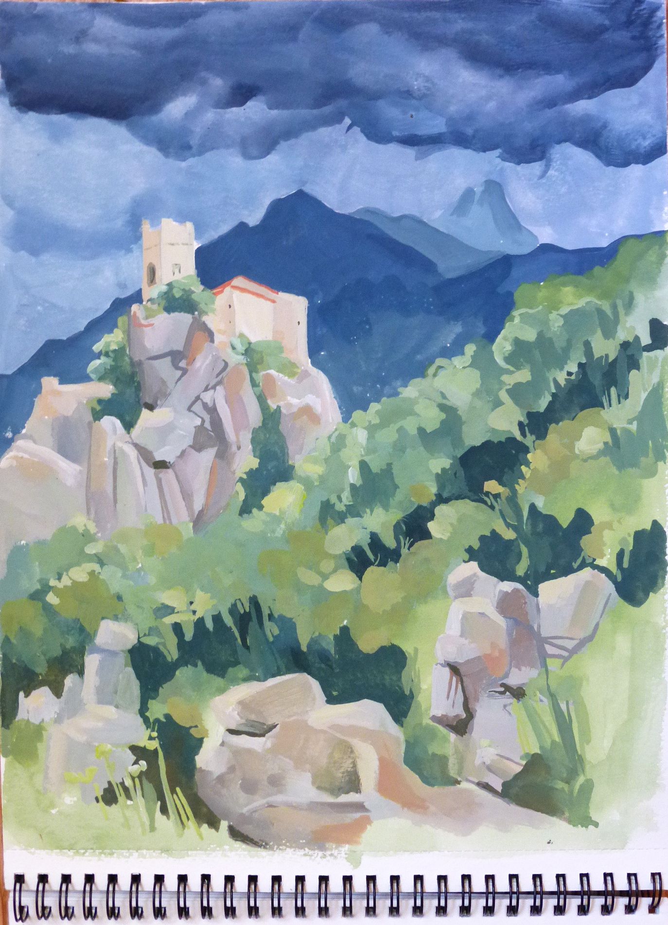 Ciel d'orage sur Eus, gouache