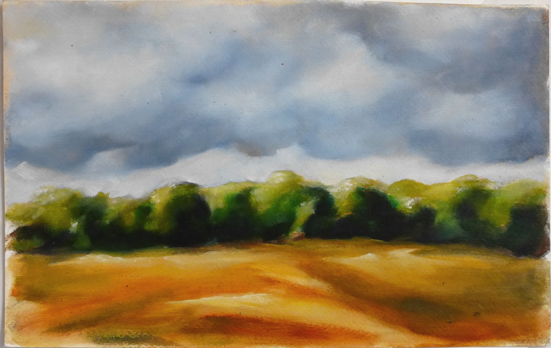 Au temps des moissons, huile sur papier