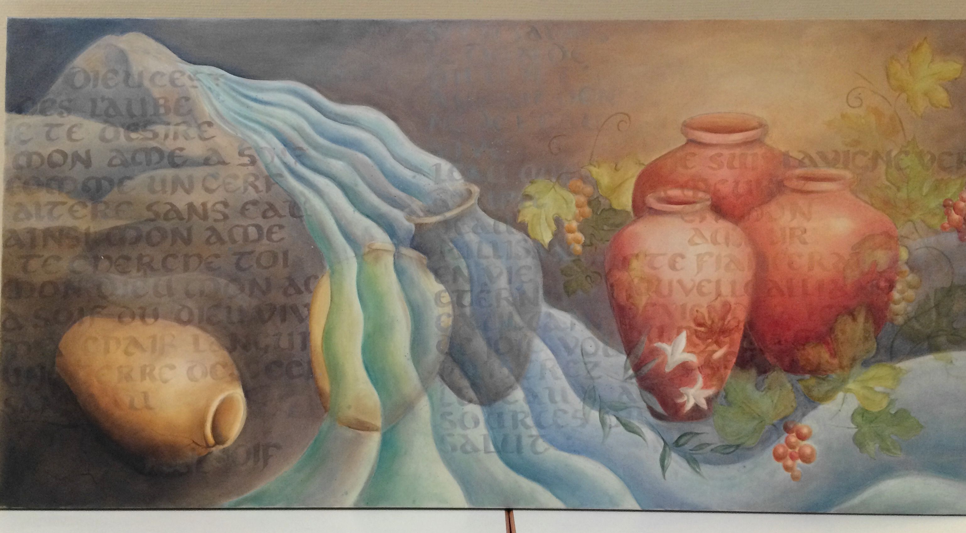 Deux se soutiennent pour accueillir les fleuves d’eau vive promis à la samaritaine « L’eau que je lui donnerai deviendra en lui source jaillissante en vie éternelle » (Jean 4)